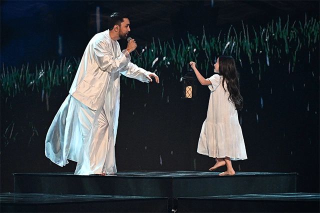 21:37. Призвал к миру в своей песне участник от ОАЭ Саиф Аль-Али. Он скромно вышел на сцену в кандуре и гафии – национальном одеянии и головном уборе.